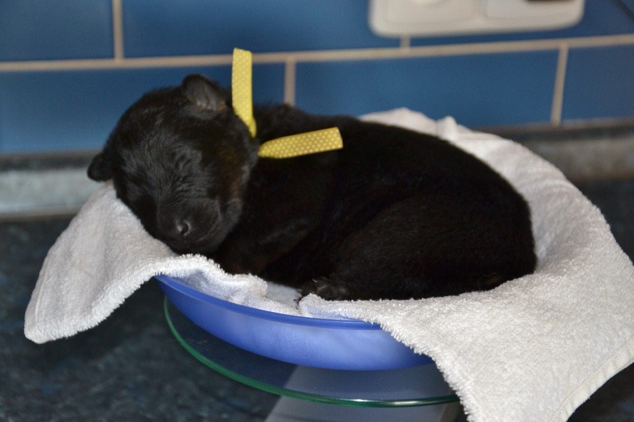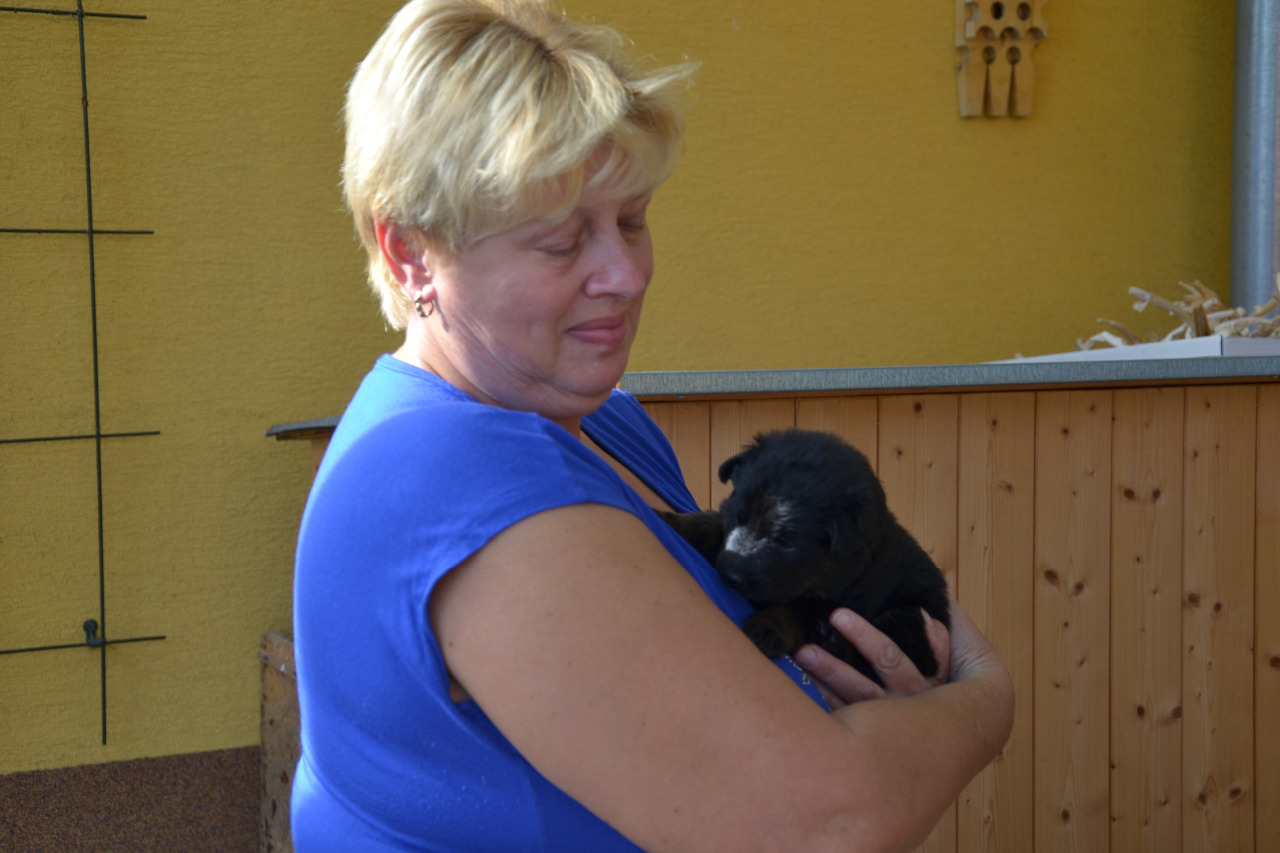 Jemná fenečka vyznakovaná po mámě, ráda se mazlí.